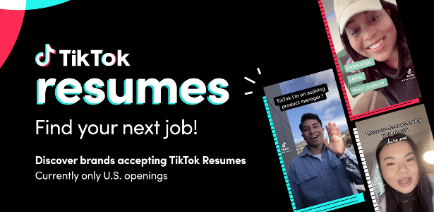 O recurso, chamado de TikTok Resumes, possibilita que os candidatos criem um currículo em vídeo e enviem para empresas cadastradas na plataforma, como Target, Shopify, Nascar ou ainda o próprio TikTok.