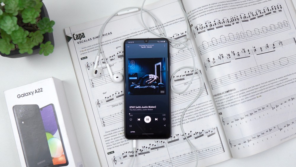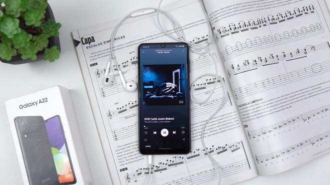 A potência se sai melhor no Galaxy, que peca só nos agudos mais estridentes. Por outro lado, o Moto não consegue reproduzir os graves e apresenta limitações nos médios. Ao menos, ele entrega fones de ouvido diretamente na caixa, para conectar na porta P2. O A22 até vem com a entrada física, mas não dá o acessório na compra.