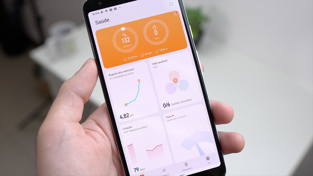 E por falar no aplicativo da chinesa, não temos nada de muito diferente por aqui para quem já usou outro vestível da empresa ou até mesmo está acostumado a lidar com os aplicativos de saúde da Samsung, do Google ou da Apple.