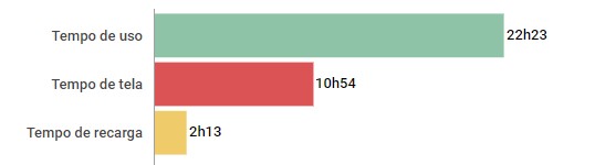 Em ambos os casos, encontramos uma bateira com a mesma capacidade de 5.000 mAh. Isso significa que a duração é igual? Não foi bem assim nos nossos testes padronizados. A Xiaomi mostrou ter um software mais bem otimizado e registrou 7 horas e meia a mais de autonomia.