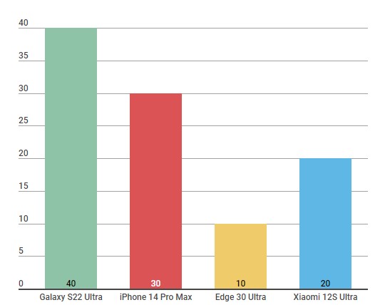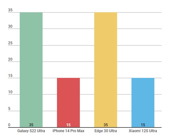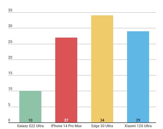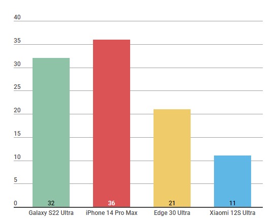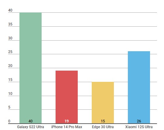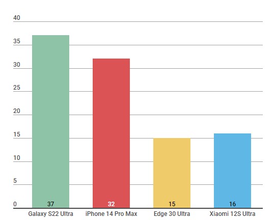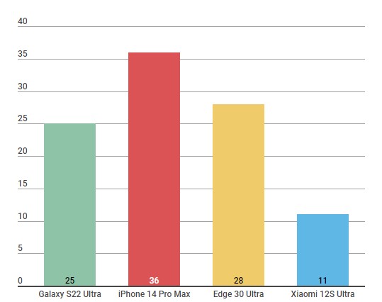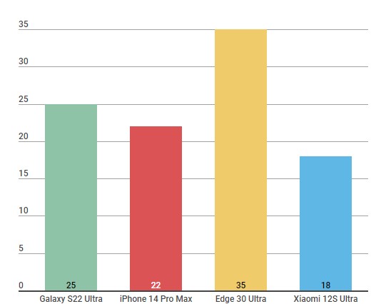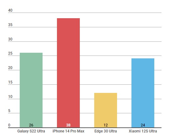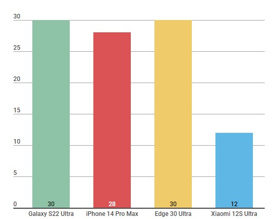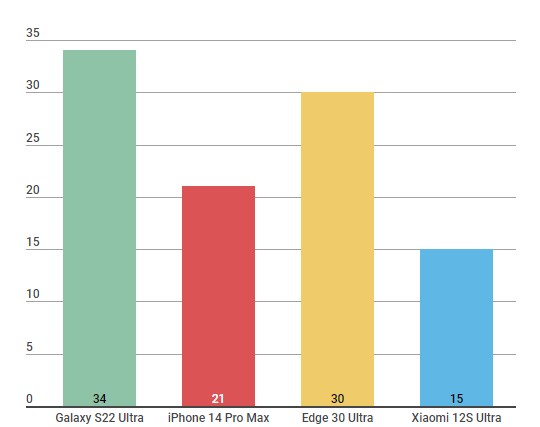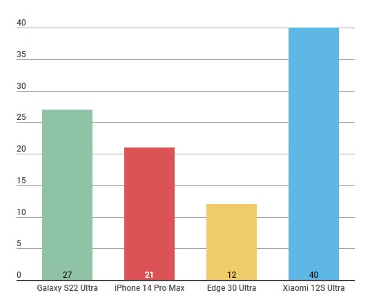 | iPhone 14 Pro Max | Xiaomi 12S Ultra | Edge 30 Ultra | Galaxy S22 Ultra | |