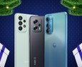Subindo de preço para algo em torno de R$ 800, temos o Moto E32. O básico da Motorola tem design mais caprichado que os celulares de entrada da Samsung e até traz leitor biométrico. O que decepciona é a ausência de Wi-Fi AC para conectar em redes mais rápidas.